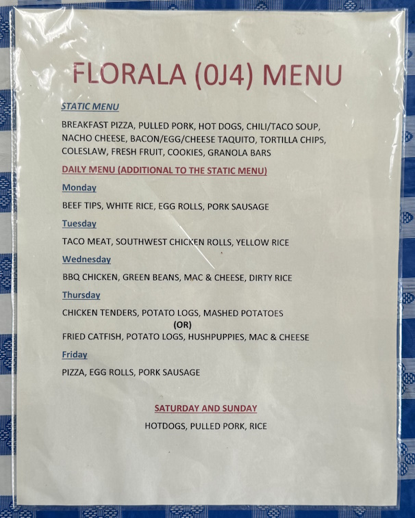 Leave food out and it will attract flies. That is exactly the point at Florala. Florala has a nice little buffet in the FBO designed to attract fliers from Ft. Rucker and it seems to be working! There is a constant stream of helicopter traffic and they have a ramp just for them. It isn't a big buffet but it is pretty tasty. When I was there they had three different kinds of BBQ. They point out that they are not a restaurant. So there is technically no charge for the food but they do ask for donations.